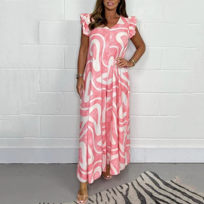 Mono de mujer con pernera ancha y estampado, cómodo y versátil para todo el año. Disponible en negro, marrón, verde y rosa. Fácil de combinar para un look único.